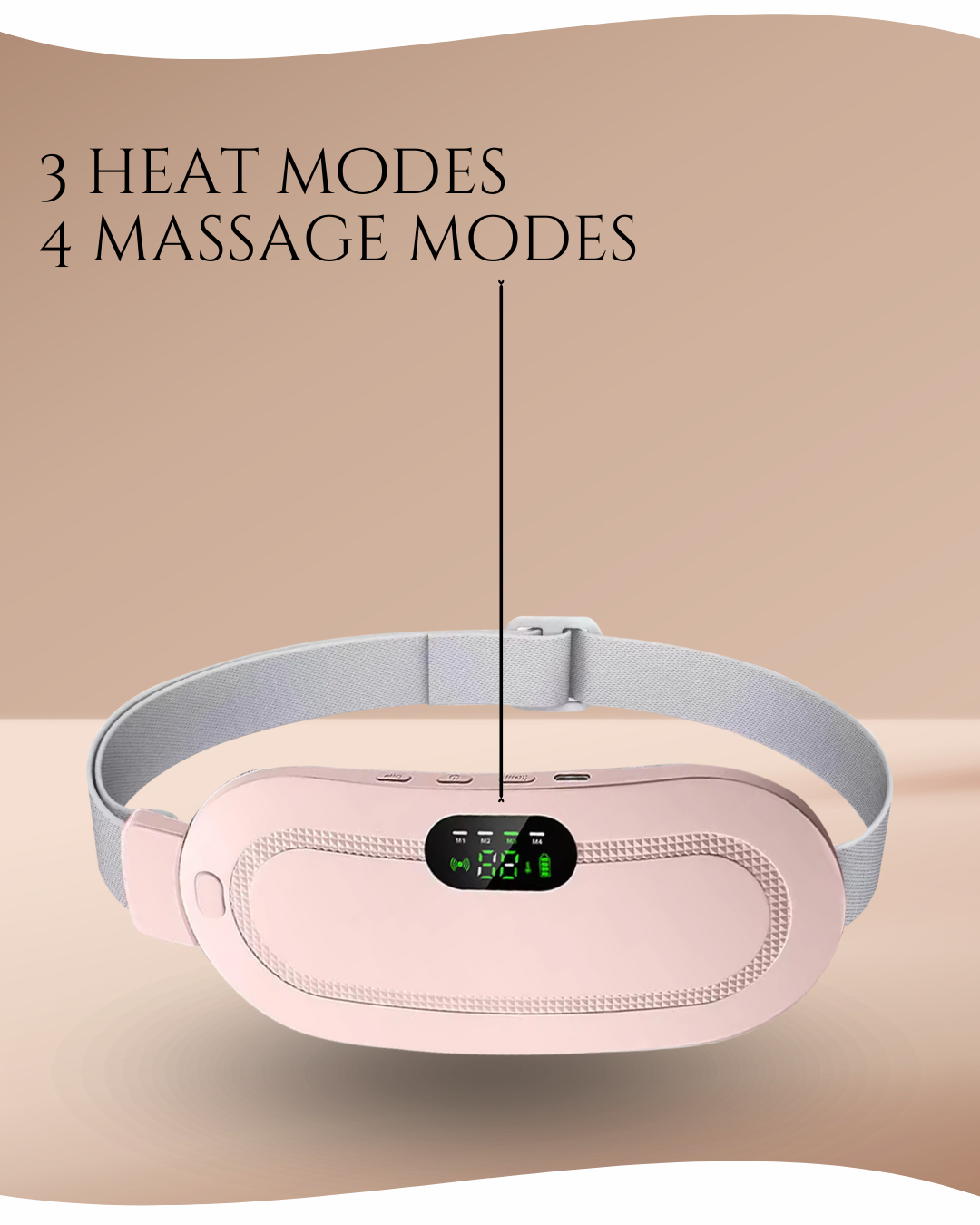 Heat therapy increases blood circulation, relaxes muscles, and alleviates cramps, while the massager enhances pain relief by reducing muscle tension and improving overall comfort during periods.
